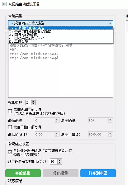 自定义采集页数,自定义销量区间,自定义价格,自动滑块